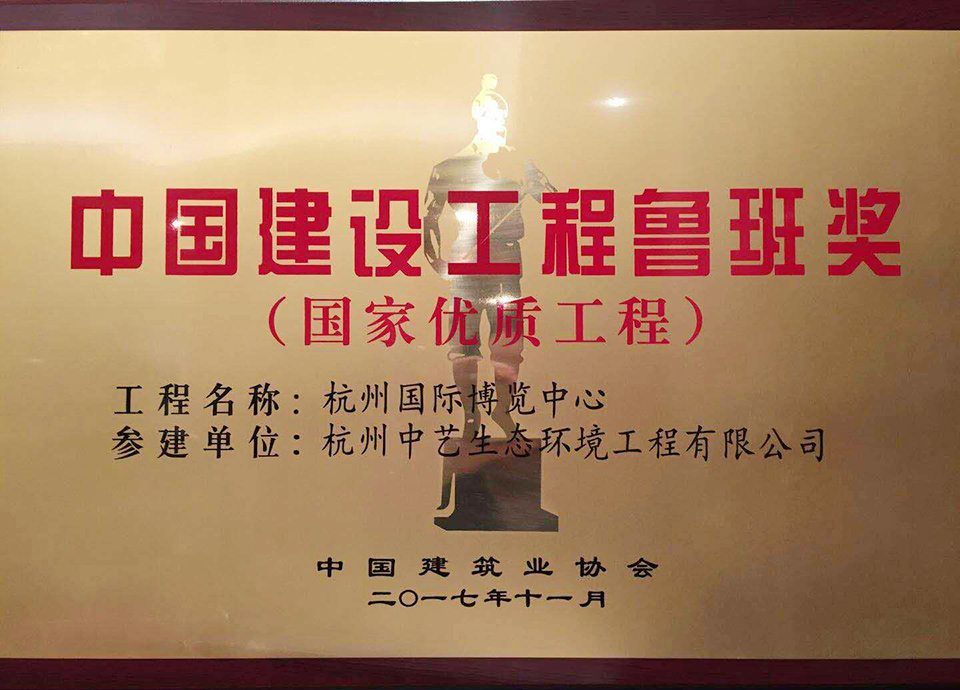 中國建設工程魯班獎是我國建設工程質量最高獎,代表了我國當前工程建設質量的最高水平,每年評審一次,兩年表彰一次。魯班獎被譽為“中國建筑界的奧斯卡”,其評選分為住宅工程、公共建筑工程、工業交通水利工程、市政園林工程四個類別。自1987年設立以來,魯班獎已走過30年的璀璨歷程,在業內和社會上都產生了重大影響,已成為精品工程和企業品牌的重要標志。作為國內知名的環境治理綜合服務商,本次獲獎,是業界對太陽成集團tyc環境25年來始終不懈地追求項目品質的肯定,是對杭州中藝生態環境工程有限公司一直以來堅守匠心、不忘初心的回報。