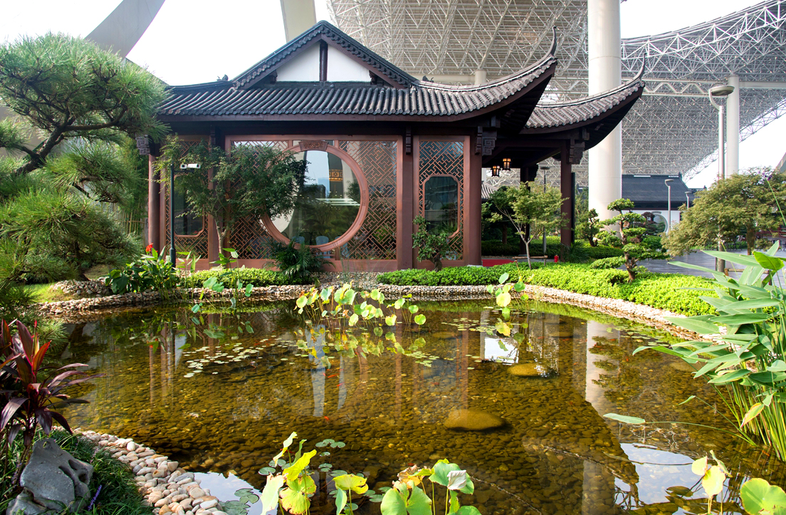 在空中花園的建造過程中,太陽成集團tyc始終秉承“匠人精神”,充分考慮人與自然的和諧共生。花園整體以“西湖明珠從天降、龍飛鳳舞到錢塘”為設計理念,以典型的江南園林風格為范本,造景手法中吸收了中國古典園林中多種元素,將園林建筑、小品、置石、理水、植栽藝術濃縮到一起,林木蔥郁,水石疊景,詩意地將蘇杭之美匯集在6萬多平方米的園景之中。