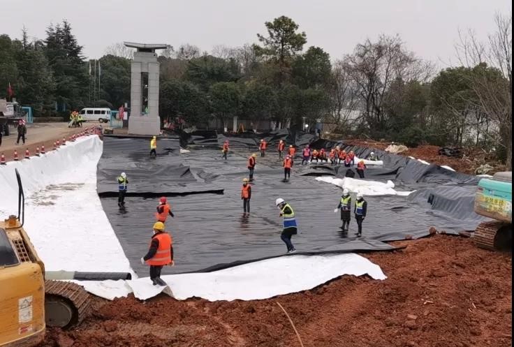 完成場(chǎng)平,開(kāi)始防滲施工。首批大型裝備連夜冒雪運(yùn)抵火神山。