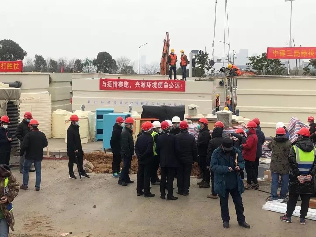 太陽(yáng)成集團(tuán)tyc環(huán)境武漢火神山醫(yī)院污水處理項(xiàng)目組緊急成立,分散天南海北的幾十名干部員工立刻取消休假,連夜投入工作。